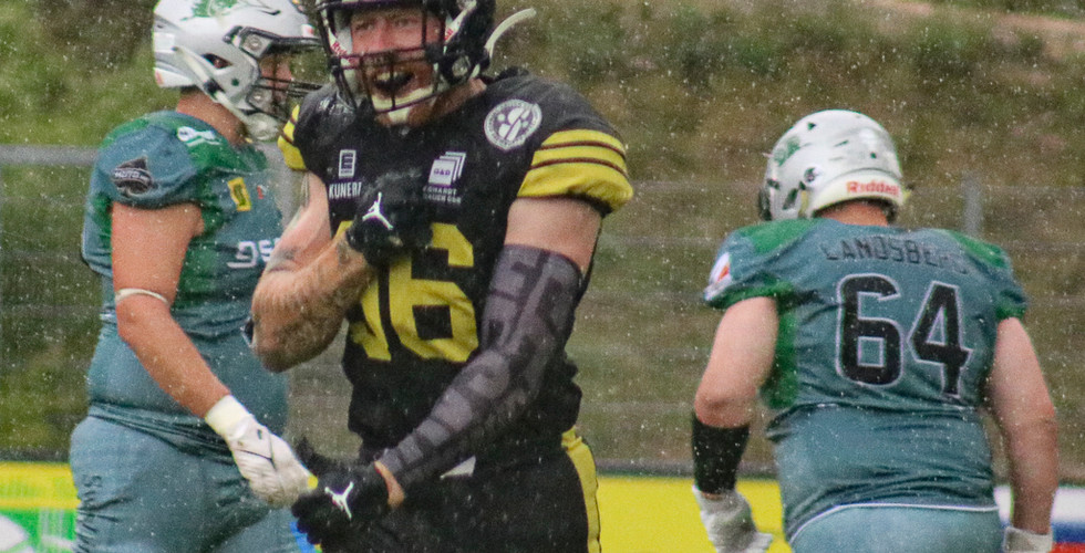 Dabei lief es wirklich gut an, den ersten Touchdown erzielte der Wide Reciever der Bulldogs Michael Baker samt Extrapunkt schon kurz nach dem KickOff im strömenden Regen. Der machte beiden Teams zu schaffen, denn immer wieder schlitterten die Spieler über den Rasen und sorgten so für Spielzüge, die auch für die Schiedsrichter nicht immer ganz eindeutig waren – oder so selten, dass Stadionsprecher Sebastian Schubauer den Zuschauern erklären musste, was da gerade passiert war. Nur kurze Zeit später legte Linebacker Markus Wright noch einmal nach, allerdings ließen die Dawgs den Extrapunkt danach liegen.